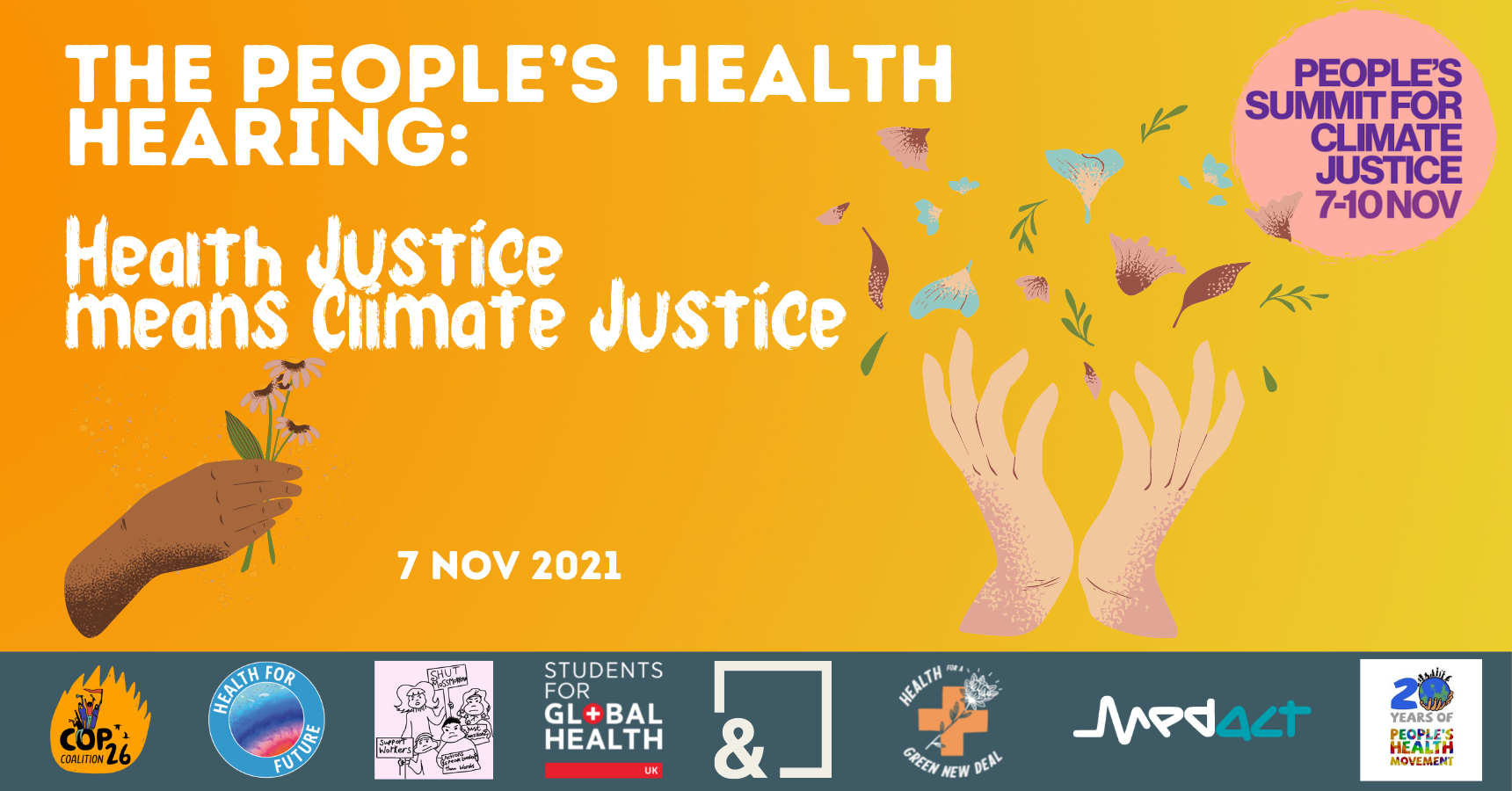 On Sunday 7th November, whilst the 26th Conference of Parties was taking place, we came together as part of the People’s Summit for Climate Justice for The People’s Health Hearing. More than 100 people joined from across the world came together online to bear witness to the public health impacts of climate violence, share stories of resistance and set out visions for health and climate justice.